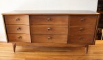 Here are some mid century modern credenza low dressers that we recently sold. We love the different styles, particularly the Johnson Carper piece with concave drawers.