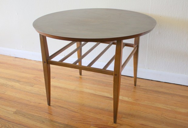 mcm round formica side table slat shelf 1