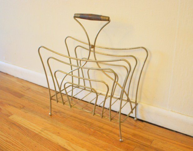 mcm wire magazine rack with wood handle 1