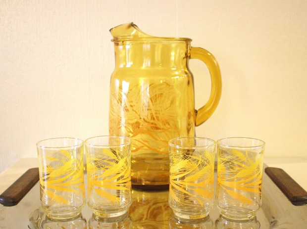 Wheat glass pitcher and glasses – set of 5 – *SOLD*