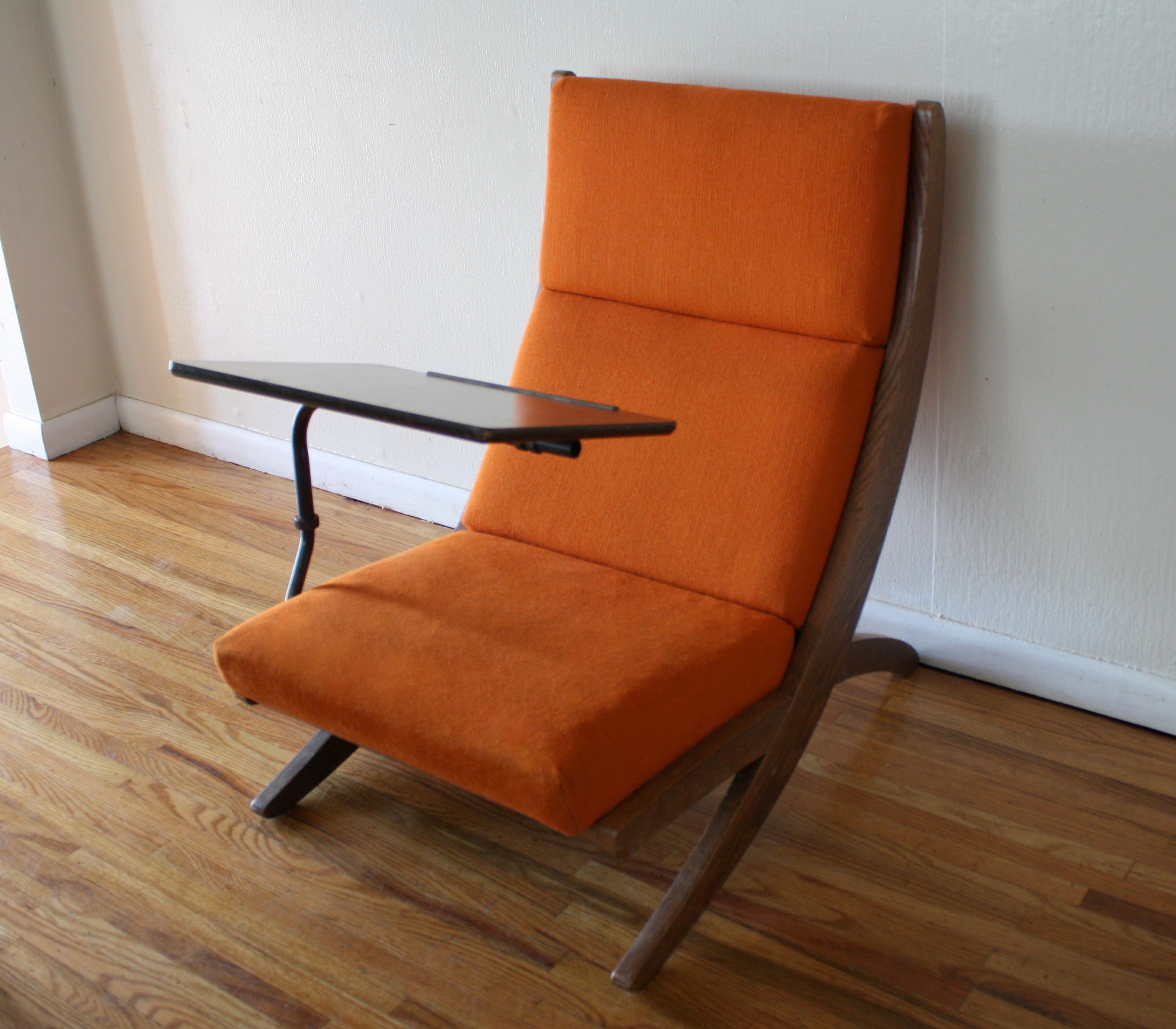mcm orange chair with detachable writing desk 2
