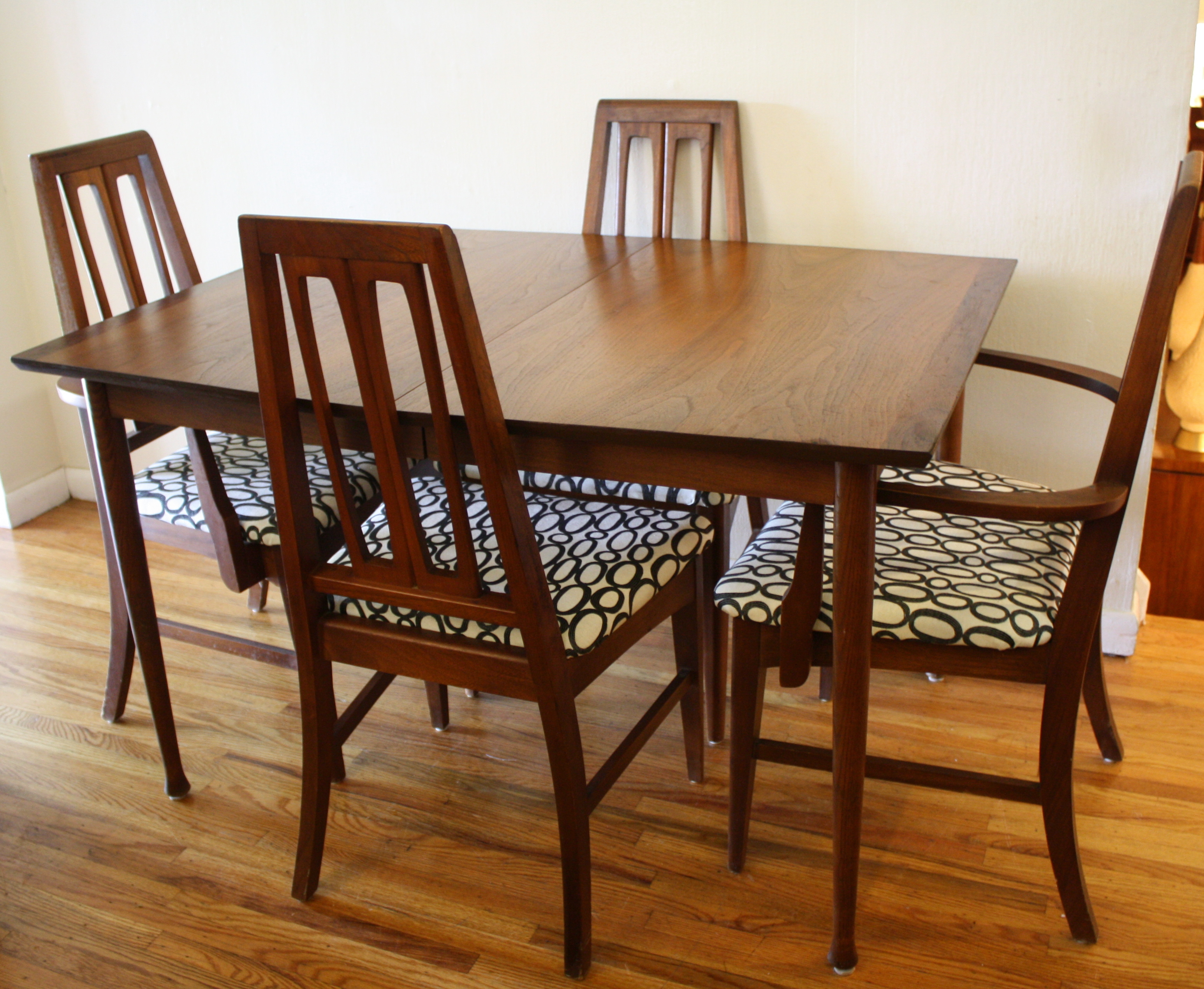 mcm surfboard dining table with circle chairs 11