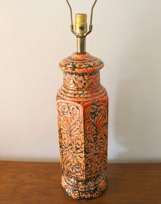 mcm orange pottery lamp 1