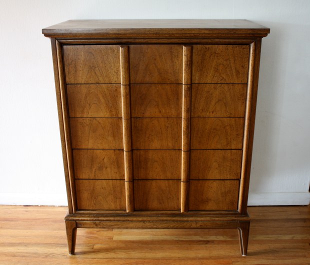 mcm Dixie tall dresser with streamlined drawers handles 1
