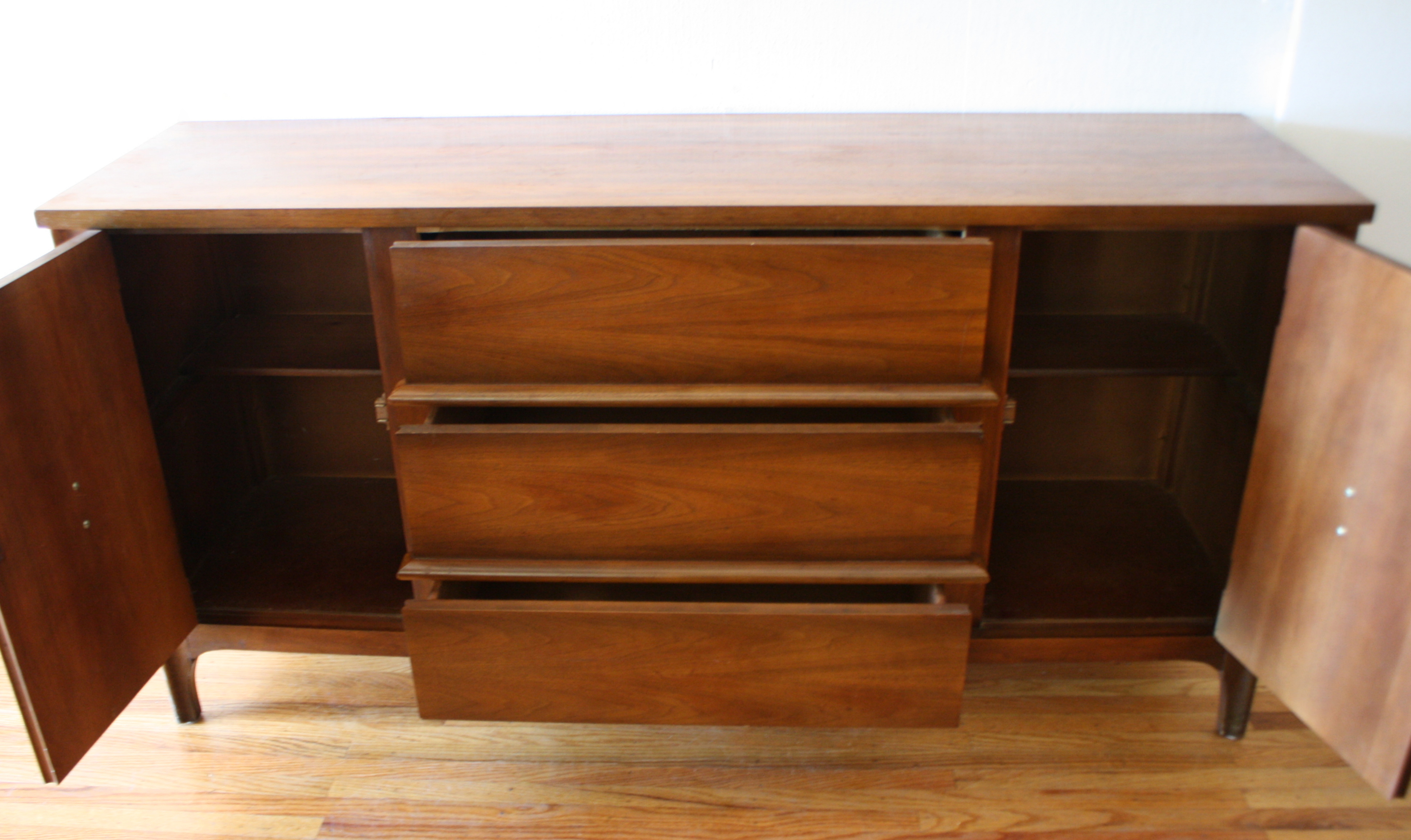 mcm credenza with side cabinets and streamlined drawers 2