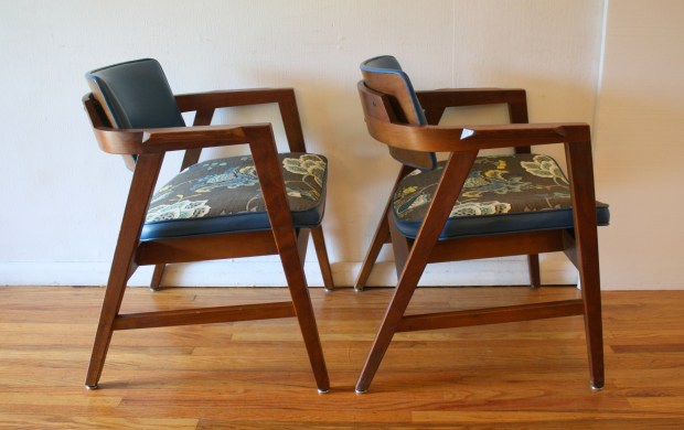 Gunlocke pair of cobalt blue chairs 3