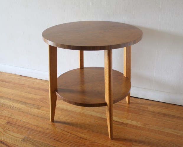 mcm round side end table with burl design 3