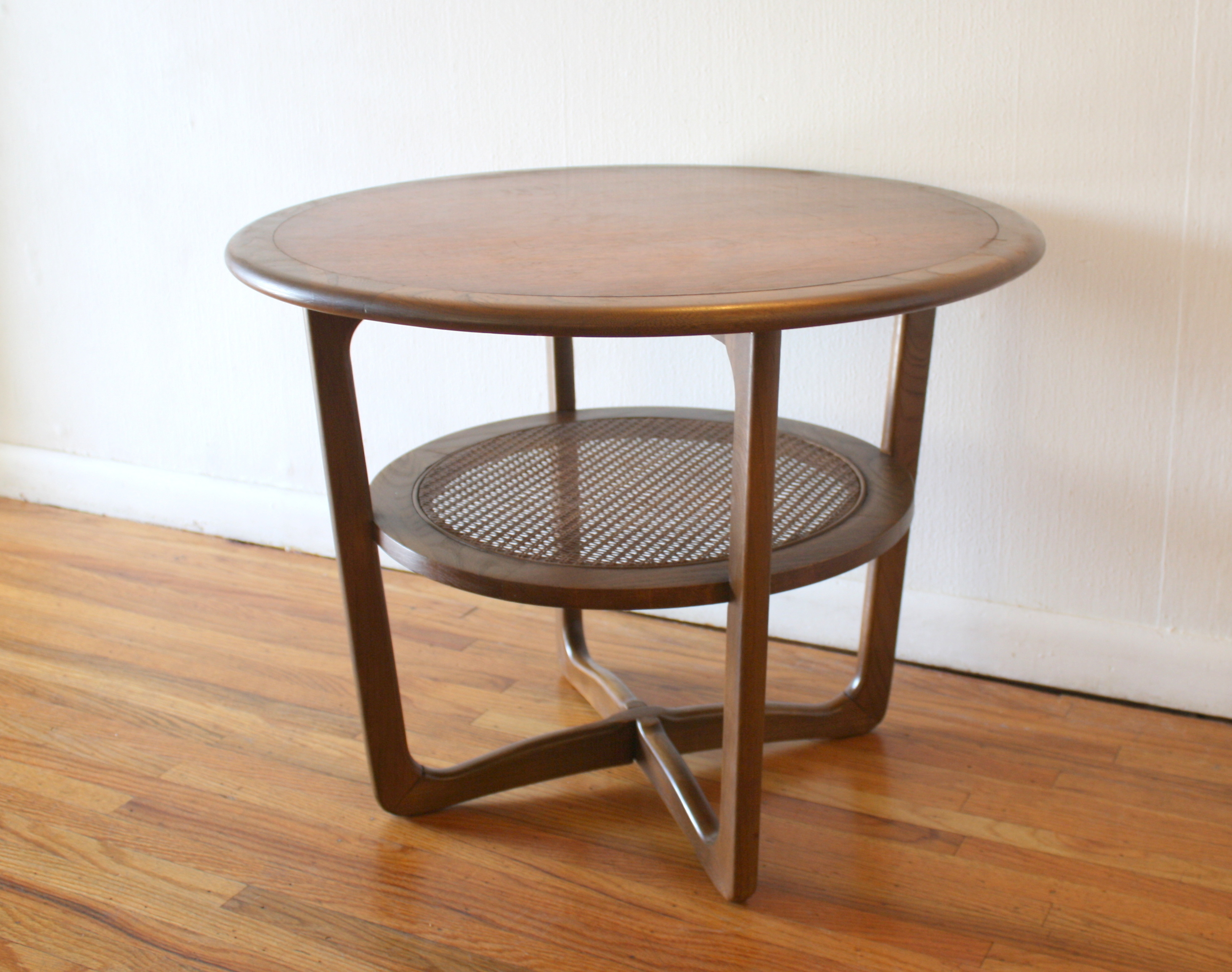 Lane round side end table with rattan shelf 1