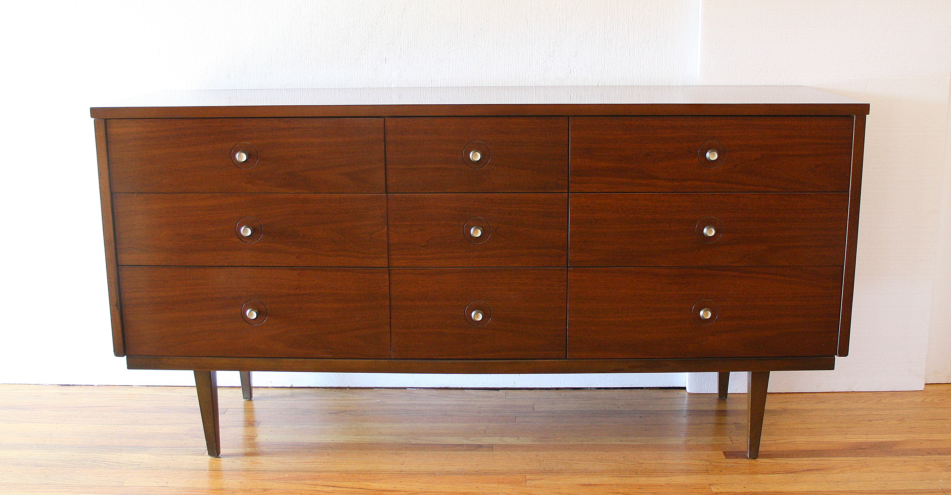Mcm low dresser credenza white knobs 1