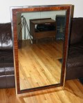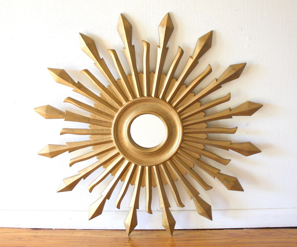 This is a mid century modern Italian brass dressing table mirror, made by FAL, in the Hollywood Regency style. The floral and bell detailing surround the edges of the mirror, as well as the base, with scrolling in the pedestal. There is an Art Nouveau female form gazing at herself in the mirror. This mirror is adjustable and can swivel. Dimensions: 7.5″W x 3″D x 10″H.