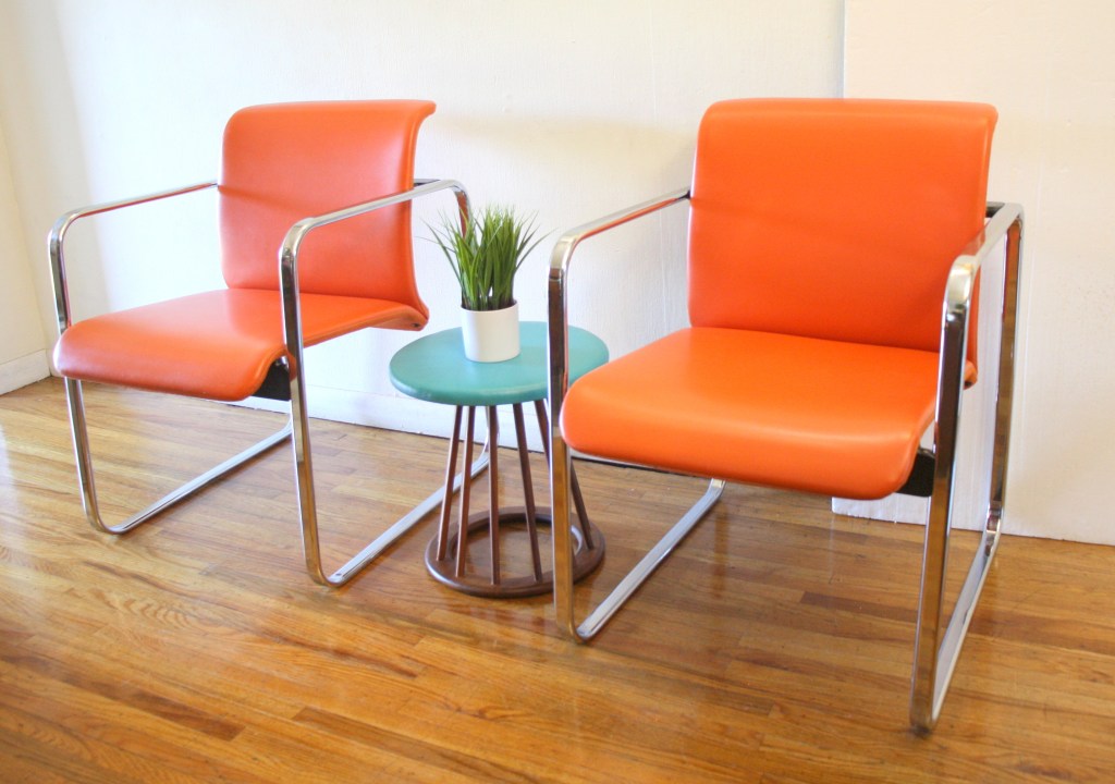 This is a pair of mid century modern solid oak Windsor chairs that have arched fan backs with beautiful tapered spindles, curved arms with dowel detail, contoured seats, and tapered legs, made in Slovenia. Dimensions: seat width: 18.5″W, seat depth: 17″D, seat height: 17″H, back height: 43″H, overall width: 23″W, overall depth: 24″D.