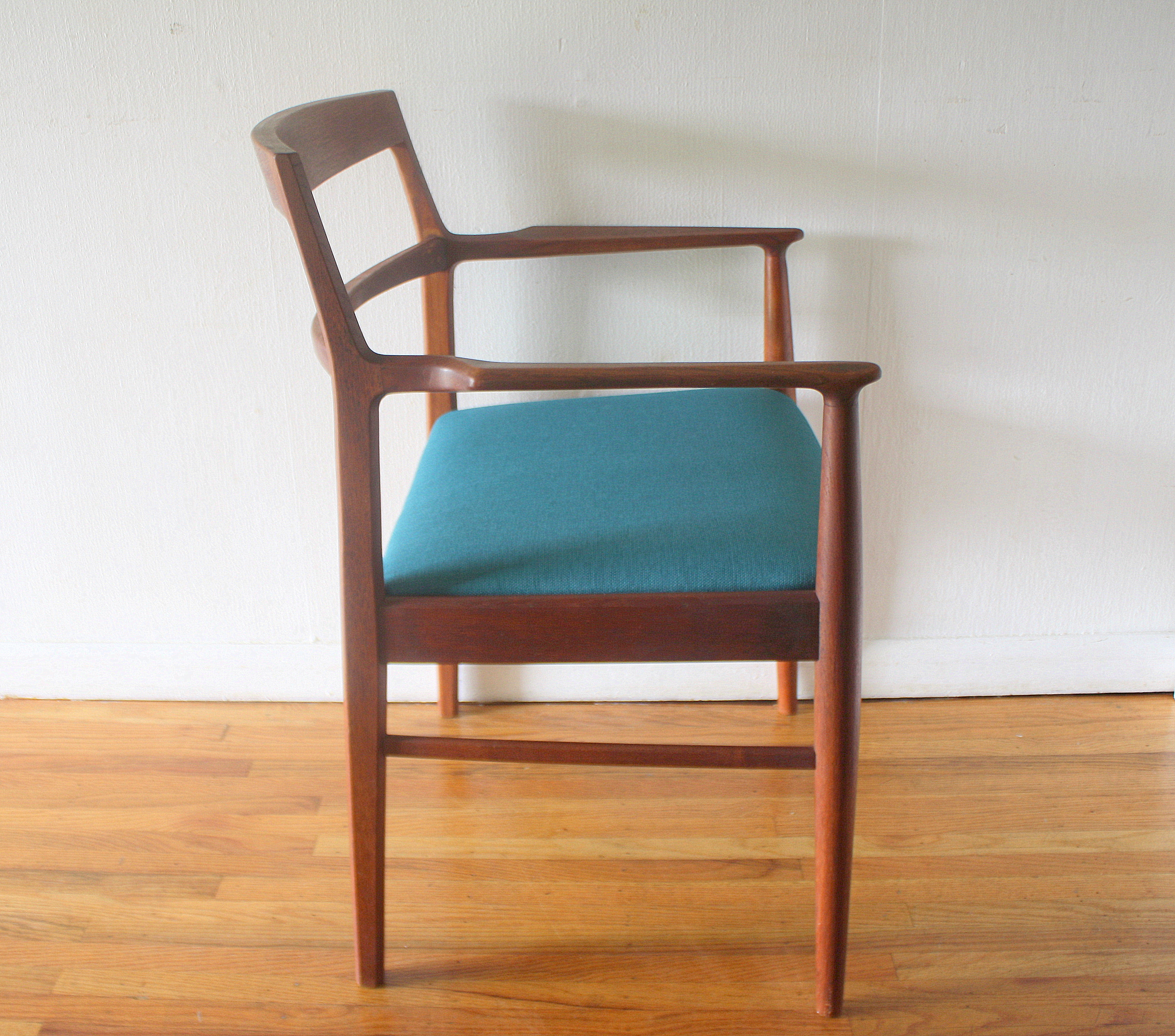 Danish teak chair with teal seat 3