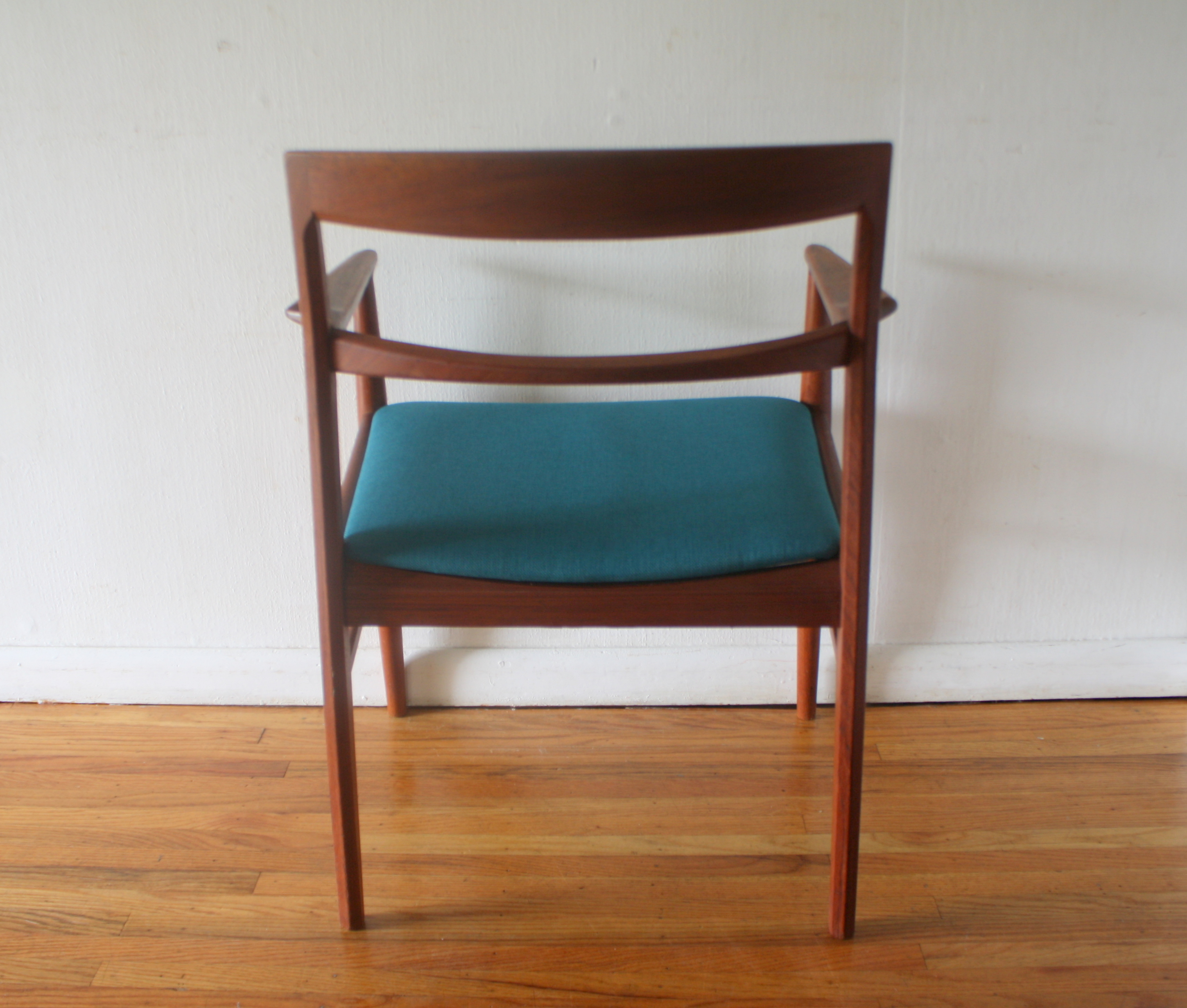 Danish teak chair with teal seat 4