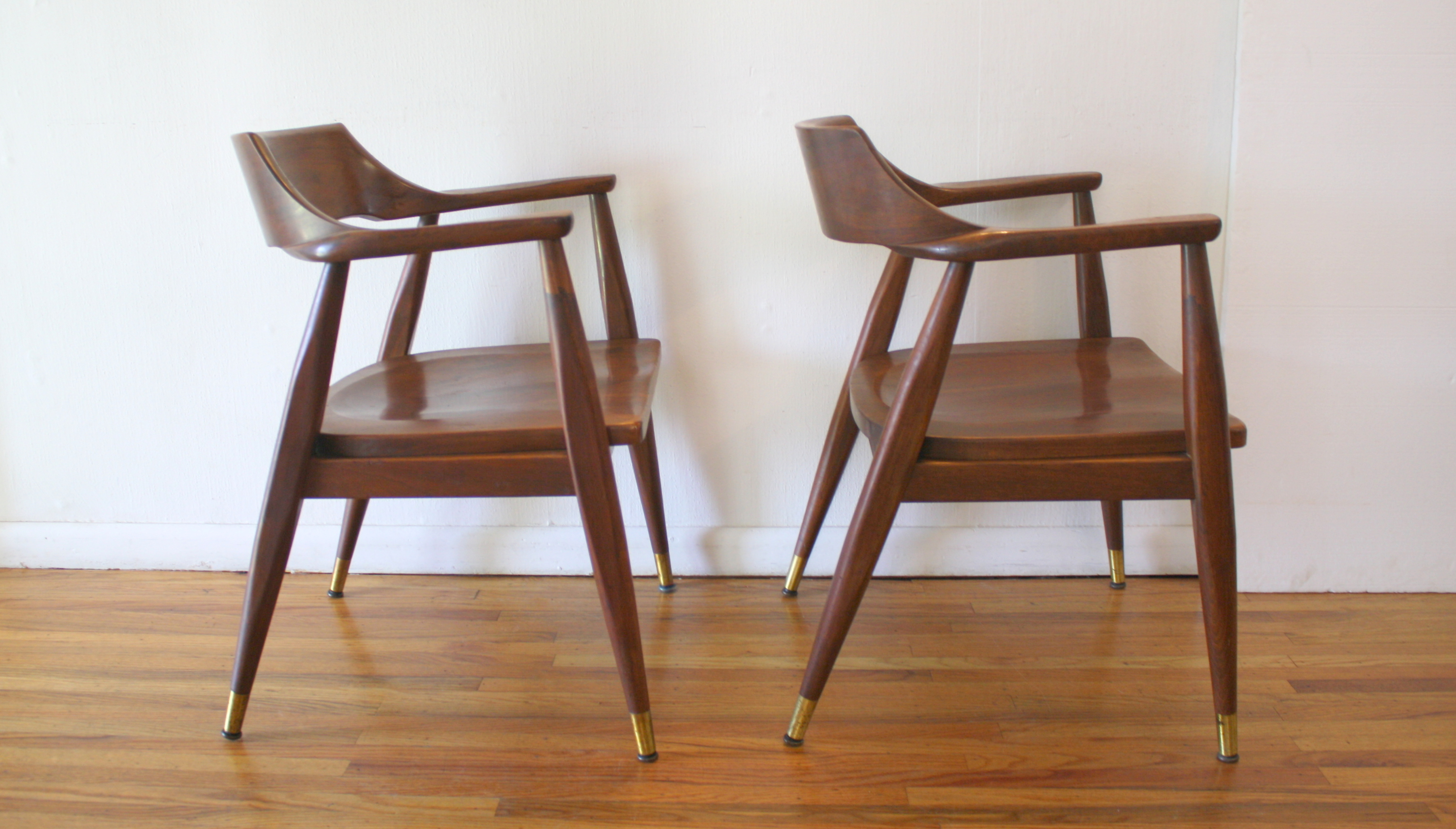mcm pair of solid wood arm chairs 2