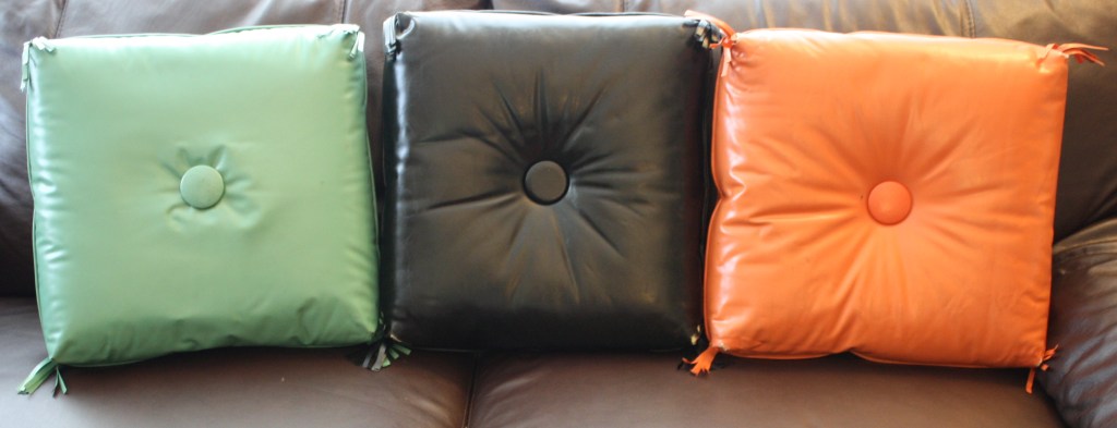 This is a mid century modern round side end accent table by Brandt. It has a beautiful wood grain, tapered legs with brass accents, and bottom shelf. Maker’s marked underneath. Dimensions: 26″ diameter, 26″H.