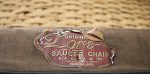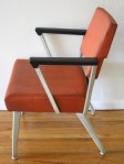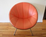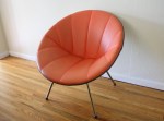 This is a mid century modern original Zori Saucer chair upholstered in orange naugahyde. It has a great atomic look.