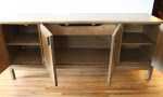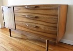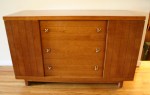 These pieces are from the Baumritter Roommates Collection. The top bookshelf cabinets are removable and have a covered compartment with doors, perfect for storing some mini bar essentials. The bottom side tables can be 1 of 3 combinations: a record shelf with drawer, a three drawer side end table, or a side table with a drawer and removable bottom shelf . The pic is shown without the bottom shelf, can be used for storing taller items. Very versatile and cool style. All 3 side tables can also be sold separately, there are 2 top shelf pieces available.