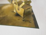 This is a mid century modern Curtis Jere style Brutalist sculpture wall hanging. The brass sunburst with birds brilliantly displays the sun’s rays. Dimensions: 38″ x 20″.
