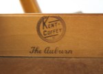 This is a mid century modern side end table from Kent Coffey’s Auburn collection. It has two tiers, 1 dovetail drawer, sculpted legs and brass tipped feet. Dimensions: 20″W x 23″D x 25″H.