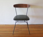 This is a mid century modern hoop chair in the style of John Hauser, with a round cast iron base with splayed legs. Its seat and back have been newly reupholstered in a supple turquoise blue naugahyde. Seat width: 20.5″, seat depth: 18″, seat height: 17″ , back height: 29.5″. Overall dimensions: 29″W x 26.5″D x 29.5″H.