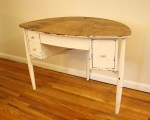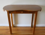 This is a petite antique kidney table made of solid wood. It can be used as a vanity, console or hall entryway table. It has a small drawer that pulls open easily.