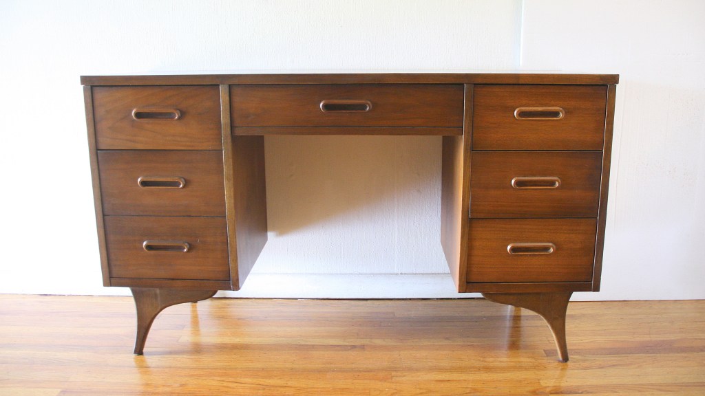 This is a rare iconic mid century modern gateleg table designed by George Nelson for Herman Miller. It is made with exotic primavera wood, with its beauty visible in its wood grain. It has a signature large dovetailed hinge design with its 2 folding leaves, 4 gatelegs, and a pedestal base. This is a true collector’s piece. Dimensions: (leaves up) 67″W x 40″D x 28.5″H, (leaves down) 18.5″W.