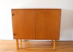 This is a mid century modern Danish teak desk that has 2 drawers with curved pulls, and an adjustable drafting table top that raises to adjustable heights and lowers flat. Dimensions: 45″W x 23.5″D x 28.5″H. Maximum drafting table raised height 11.5″, Minimum raised height: 2.25″.