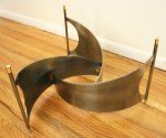 This is a mid century modern solid mahogany free form kidney coffee table with brass tipped tapered legs by Founders Furniture. It is maker’s marked on the bottom Modern by Founders. Dimensions: 48″W x 31″D (thicker side) x 15″H.