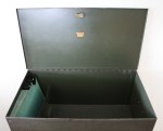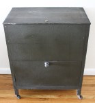 This is an antique industrial file box by Cole Steel Equipment Co. in NY. It was made for the Lamb Brothers Stationers in Philadelphia. It has a top compartment that flips open with original file folders inside, has a lower compartment, steel curved handles, and is on casters. Very cool industrial piece for accent and function.