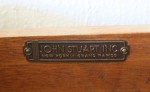 This is a pair of mid century modern Milo Baughman style Parsons arm chairs for John Stuart. Maker’s marked underneath. They are fully upholstered in a champagne satin boucle, with tufted backs. Dimensions: seat width: 23″, seat depth: 23″, seat height: 16.5″, back height: 30.5″, overall width: 26.5″, overall depth: 27.5″.