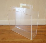 This is a mid century modern lucite side end table with a magazine rack. Perfect for enhancing the negative space in smaller places, and adding that perfect touch of modern.