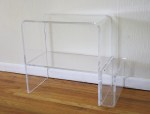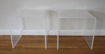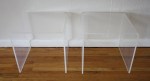 This is a pair of mid century modern lucite side tables and a magazine holder. They have a simple clean design and accentuate your room’s negative space and light.