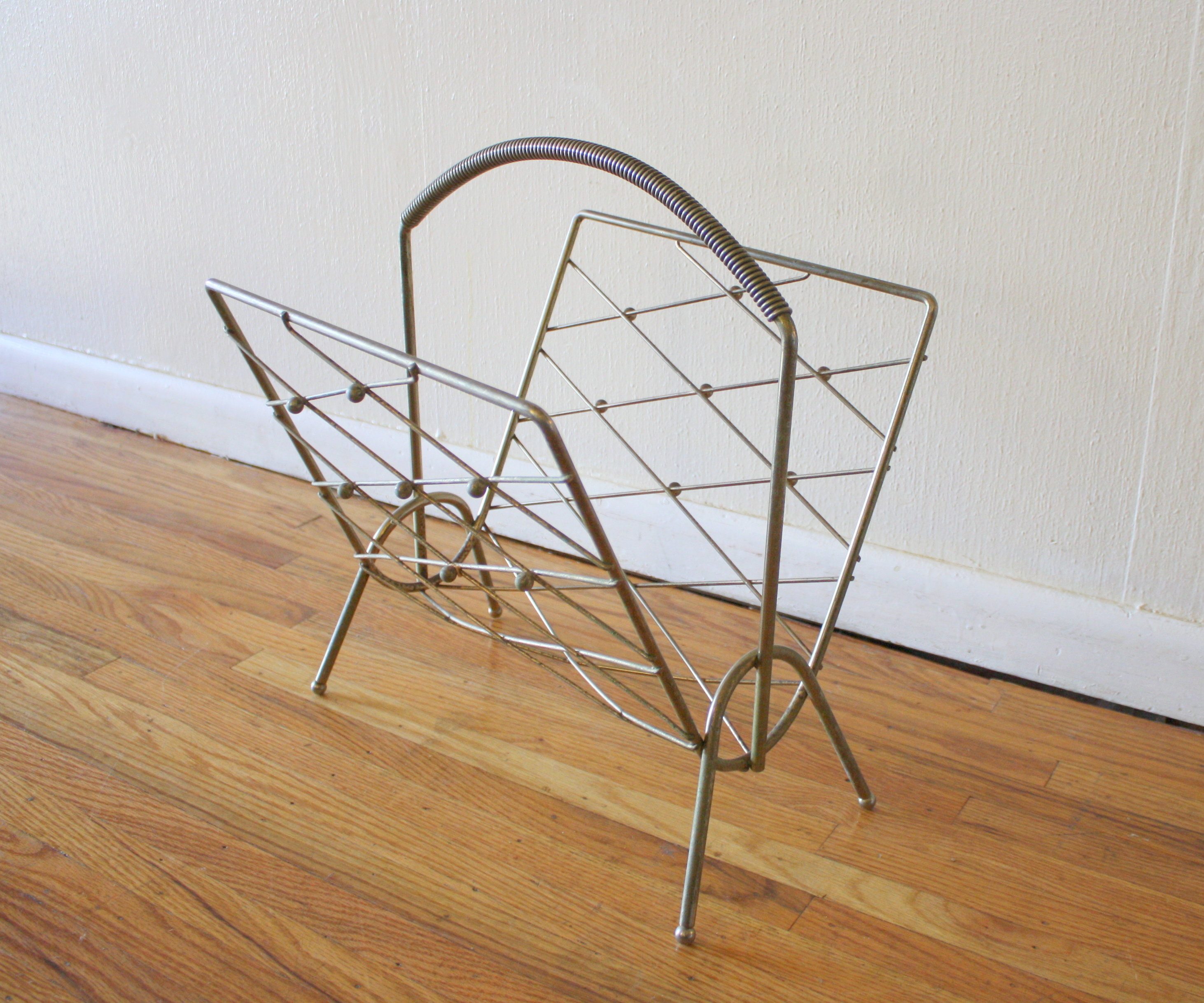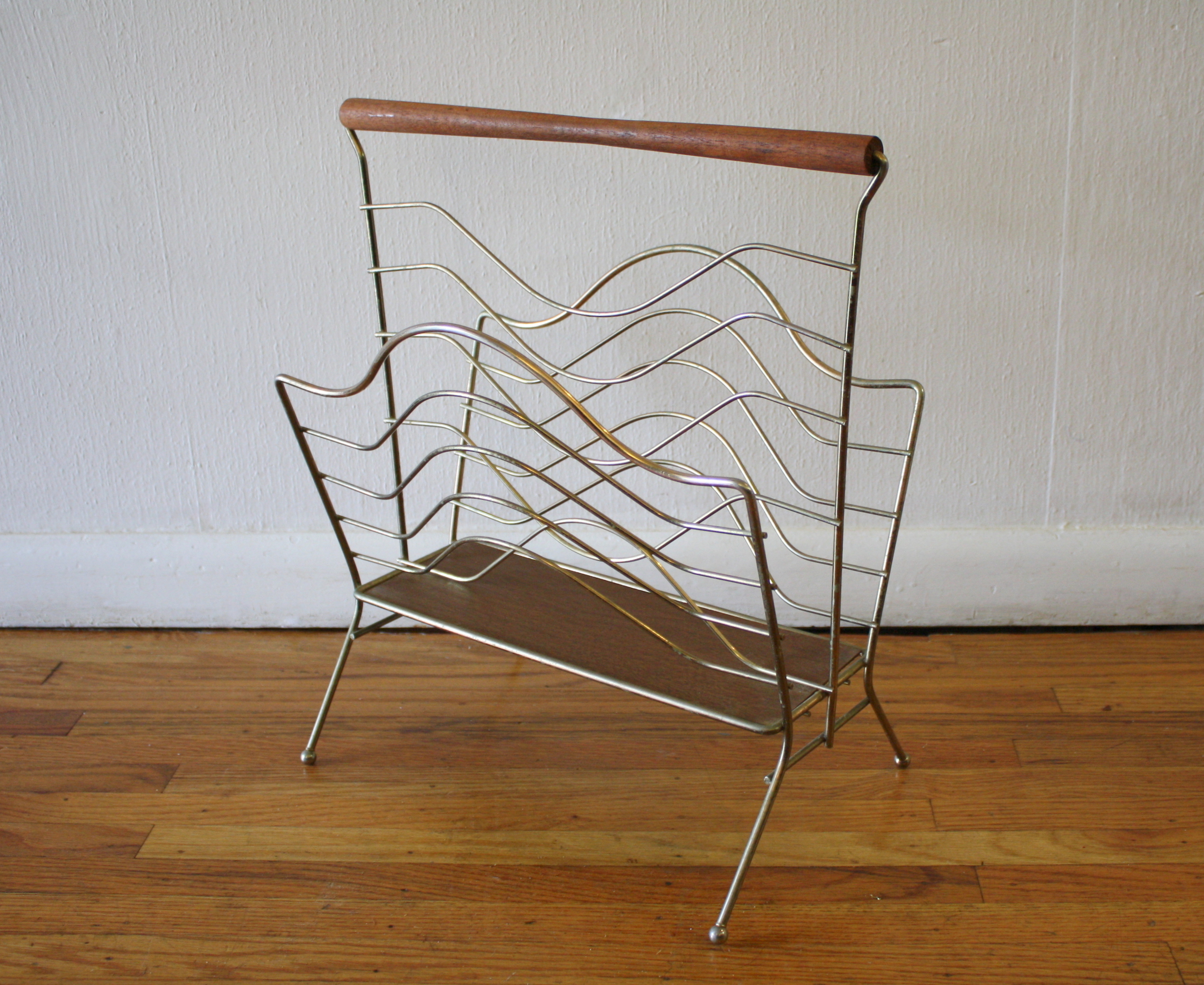 This is selection of our mid century modern wire magazine racks. Mcm mag rack with wood ball feet: 18″W x 11.5″D x 18″H.