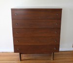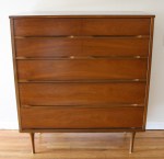 These are 2 pair of mid century modern side end table nightstands. The first pair has 1 dovetailed drawer with brass inset ceramic knobs, a bottom shelf and tapered legs: 19″W x 15″D x 24″H. The second pair has 1 dovetailed drawer with metal knobs, a bottom shelf and tapered legs: 22″W x 14″D x 23″H.