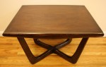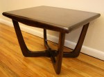 This is a Mid Century Modern side end table made of solid wood. It has a cross leg design and is in excellent condition.