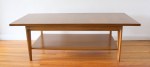 This is a matching pair of high and low dressers by Ward. They have a parquet louvered drawer design and tapered legs. The tall dresser has 4 dovetailed drawers: 32″W x 18″D x 42″H. The low dresser credenza has 6 dovetailed drawers: 52″W x 18″D x 30″H.