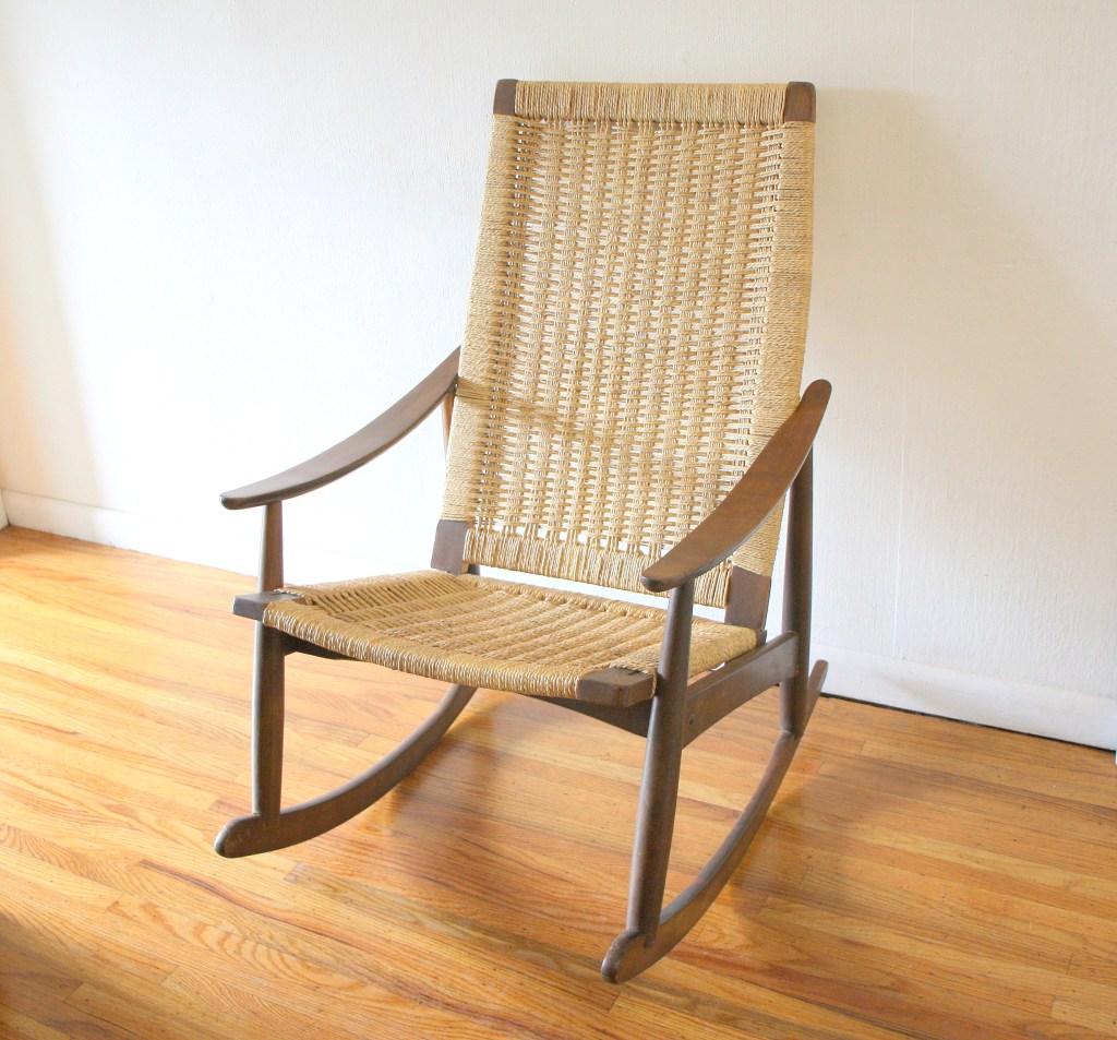 Mid Century Modern Hans Wegner Style Woven Rocker