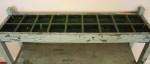 This is a mid century modern rolling bar serving cart with a hidden center section. The 2 leaves slide open to reveal the center, and give extra serving space. The bottom cabinet has 2 rattan doors with brass pulls, 2 adjustable shelves, and a serving drawer. Dimensions: leaves closed: 36.5″W x 18″D x 29.5″H, leaves extended: 57.5″W, center area only: 20.5″W, 16″D, each individual leaf: 18″W.