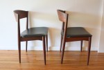These are 3 sets of mid century modern dining chairs. The first set of 4 are Broyhill Brasilia dining chairs with their signature sculpted backs, and newly covered in teal tweed: 19″ seat width, 15.5″ seat depth, 17.5″ seat height, 42.5″ back height. The second set of 4 chairs has solid wood tall arched frames, and newly covered in gray and white chevron: 20″ seat width, 17″ seat depth, 18″ seat height, 40″ back height. The third set of 4 chairs has solid wood curved back frames, and newly covered in black and white chevron: 16″ seat width, 16.5″ seat depth, 17″ seat height, 33″ back height.
