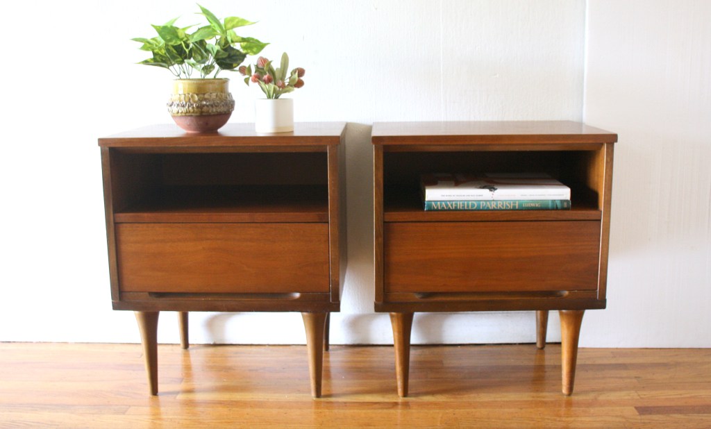 Mid Century Modern Side End Table Nightstands by Broyhill