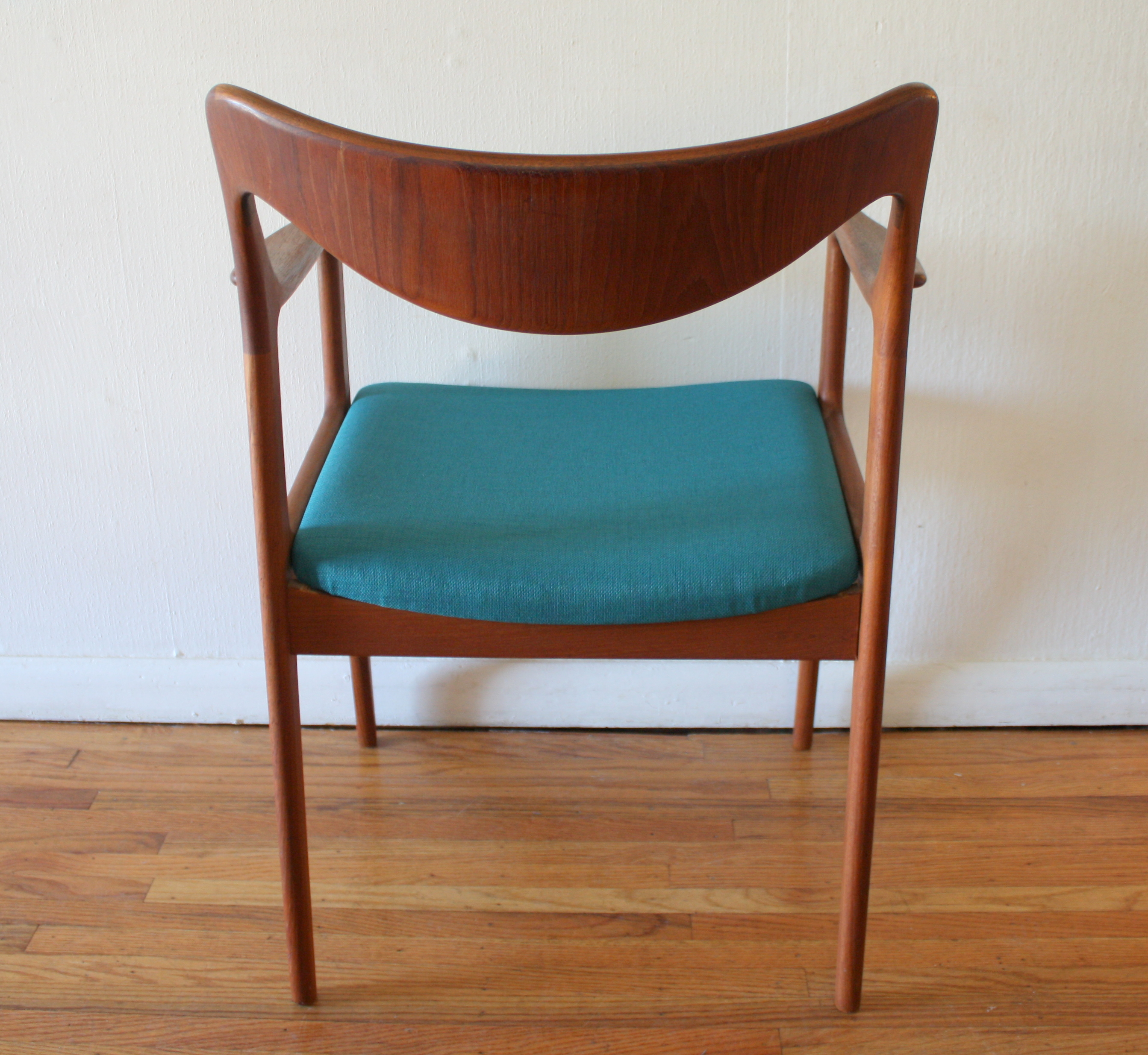 This is a mid century modern lucite arm chair in the style of Charles Hollis Jones. It has a lucite curved frame, and newly reupholstered in a soft peacock teal velvet. Dimensions: seat width: 19.5 “, seat depth: 18″, seat height: 19″, back height: 28.5”.